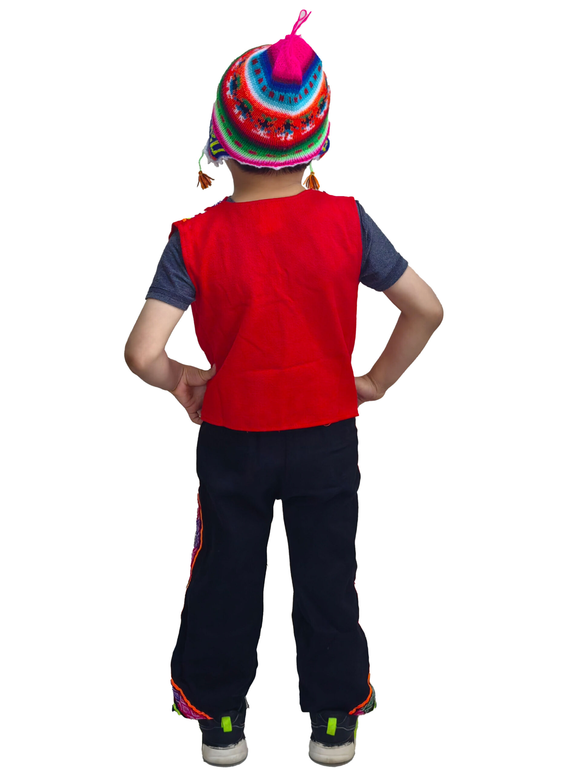 Incluye: Pantalón, camisa, chaleco, chullo y huaraca.